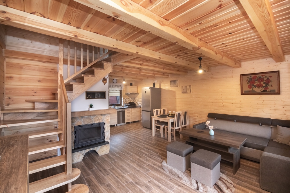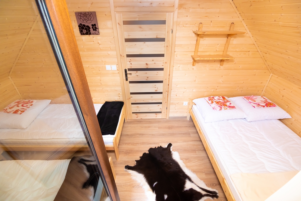 Nasz domek posiada w standardzie 7 miejsc noclegowych – 3 łóżka pojedyncze oraz 2 podwójne.